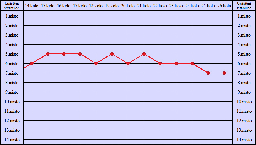 Graf umístění v tabulce - jaro 2008 (Severočeská divize)