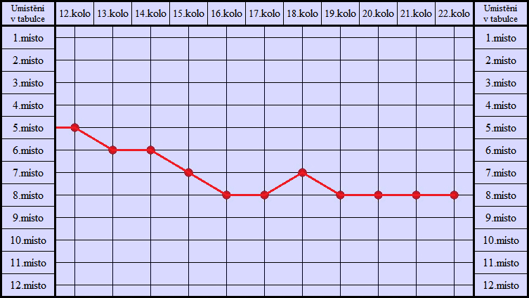 Graf umístění v tabulce - jaro 2014 (Krajský přebor sk.B)