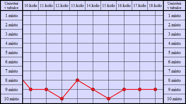 Graf umístění v tabulce - jaro 2016 (Krajský přebor sk.B)