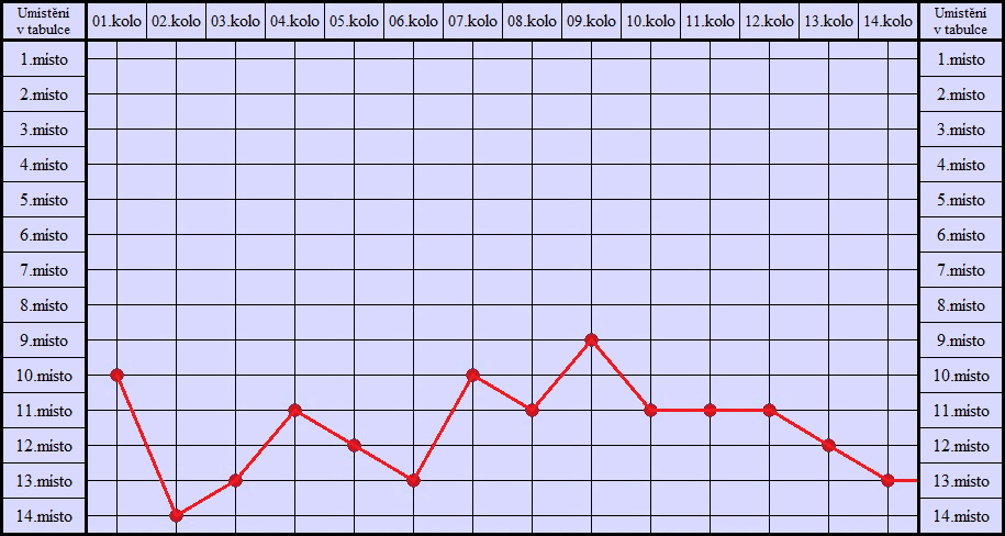 Graf umístění v tabulce - podzim 2016 (Krajský přebor)