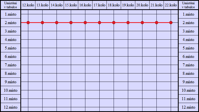 Graf umístění v tabulce - jaro 2010 (Okresní přebor - sk.B)
