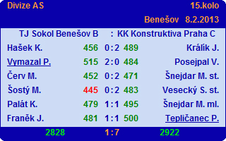 TJ Sokol Benešov B - 1:7 - KK Konstruktiva Praha C Zpravodaj 15